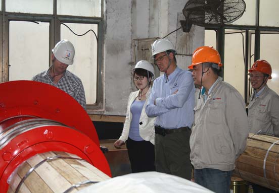 美國戴尼公司一行在衡重公司總經理、設備公司法人代表李傳林和設備公司經理王朝暉的陪同下,對生產現場進行了考察。